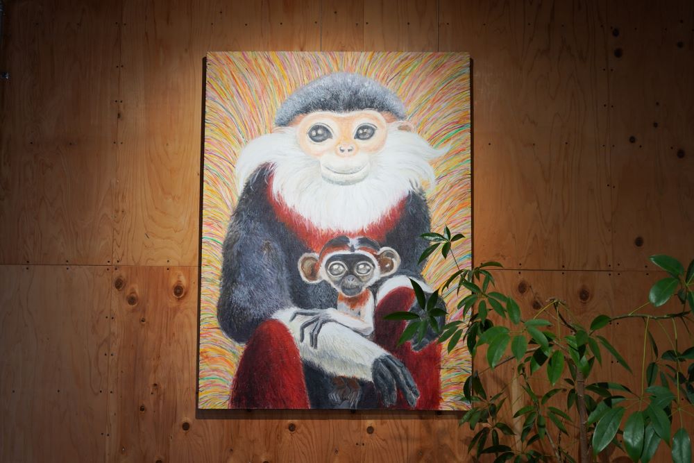 古民家をリノベーションした店の中は、石原さん作の絵画や、「Hello, Goodbye Frames」池田さん作の額縁と写真、アナログレコードやアコースティックギターなどが置いてあります。響灘の波音を聞きながら、ほっと一息つける空間です。